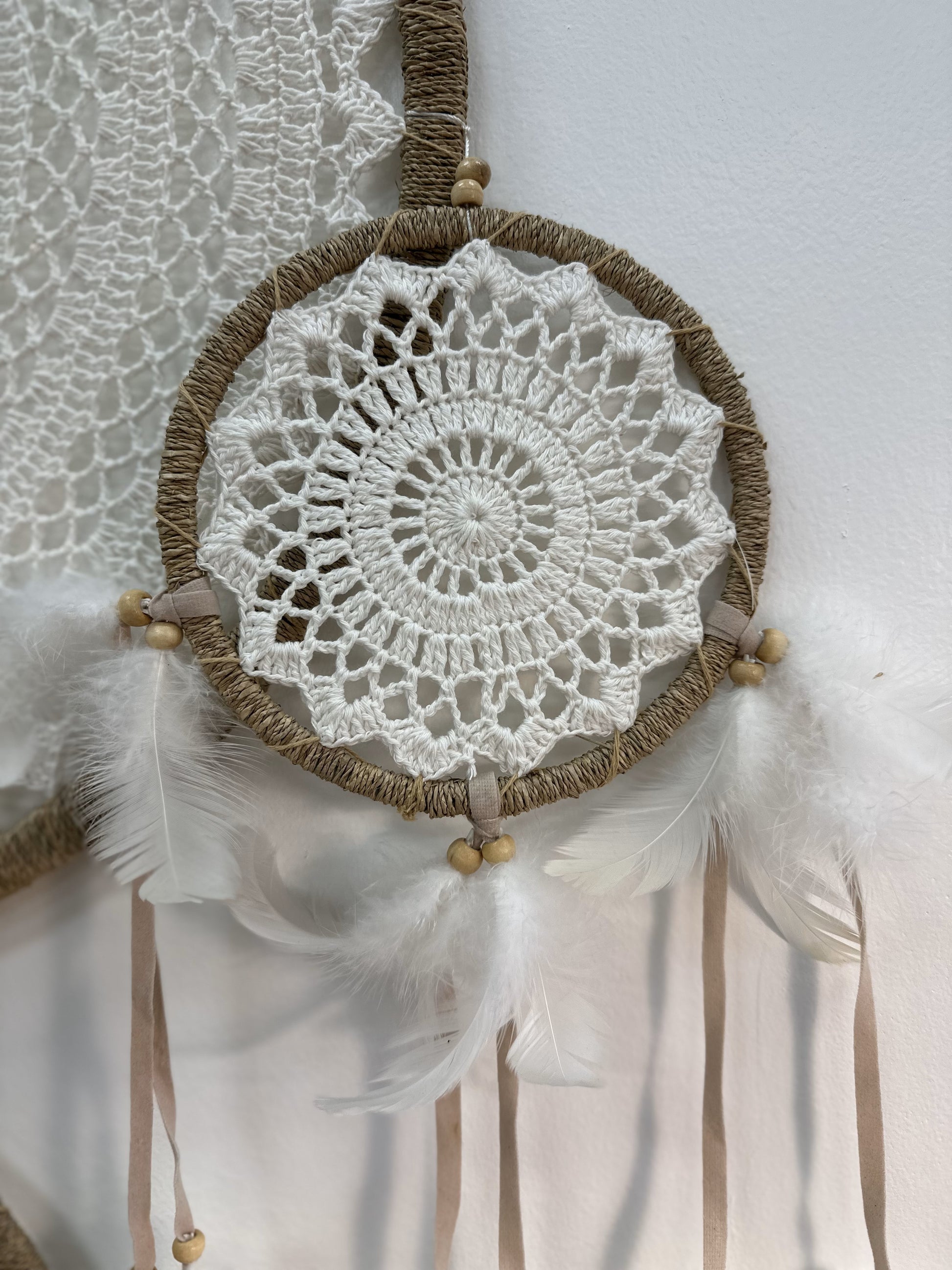 Add a touch of bohemian charm and ethereal beauty to your home with our White Macrame Dreamcatcher.