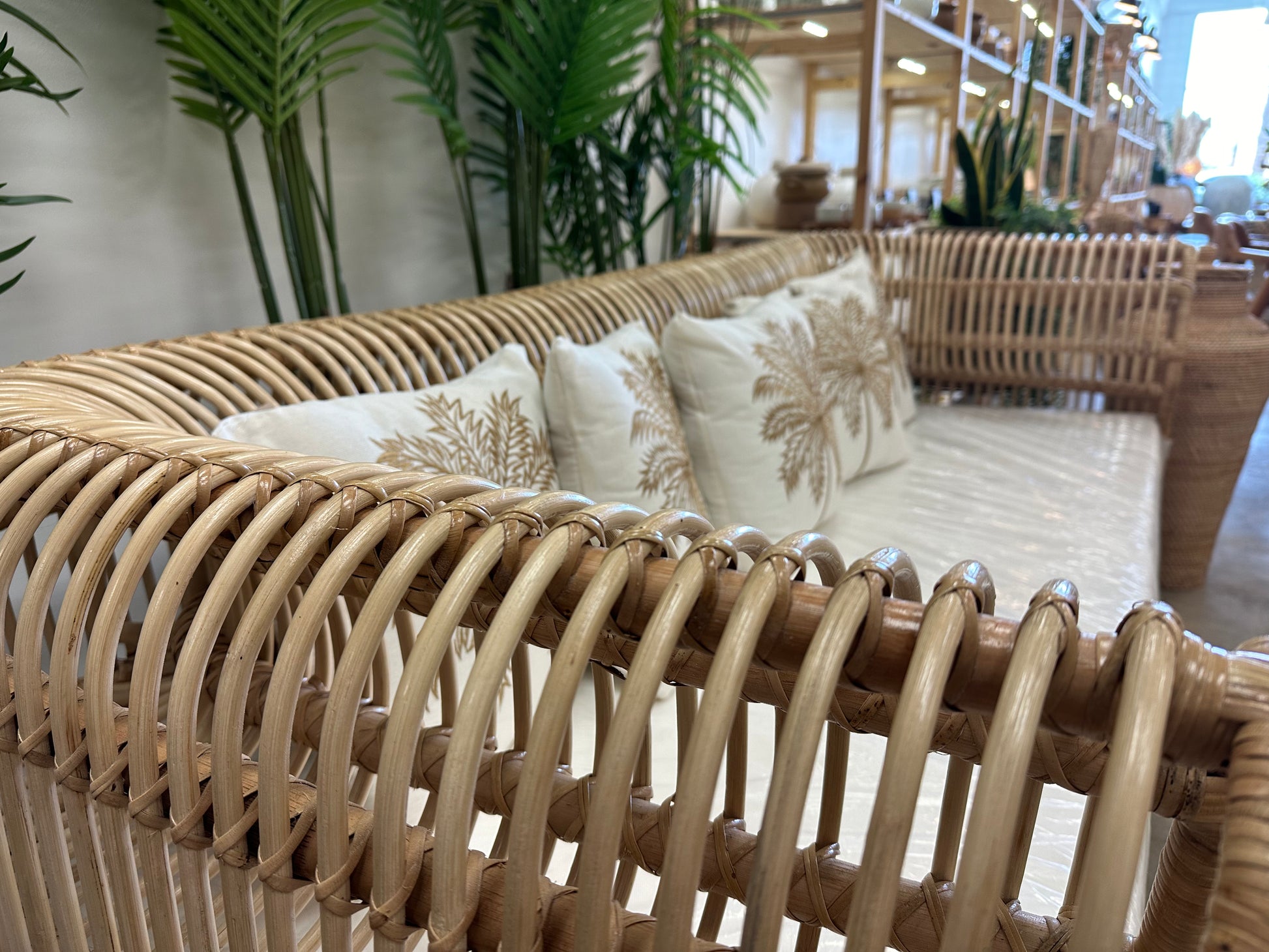 Add a touch of tropical elegance to your living space with our Bali Boho Rattan Couch. Measuring 75 inches in length, 33 inches in depth, and 31 inches in height, this stunning piece is handcrafted from high-quality rattan, bringing the essence of natural beauty into your home. Whether you're looking to create a cozy semi-open area or a charming indoor retreat, this rattan couch is the perfect addition to elevate your decor.
