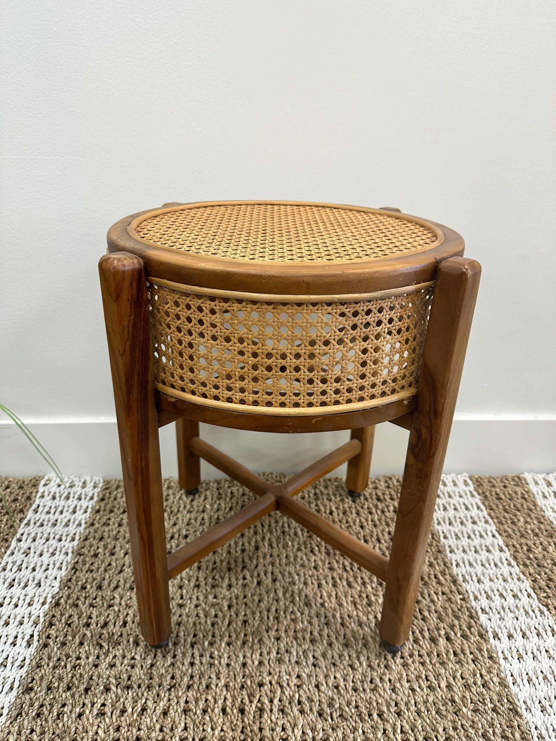 Rattan & Teak Wood Side Table